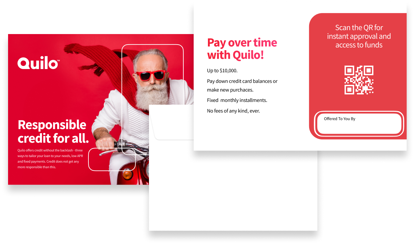 Community Banks and Credit Unions have to be conscious of various regulatory requirements as those apply to promotion and marketing of Quilo loans. Â While Quilo Marketing Creative comes with regulatory compliance in mind, your financial institution may choose to develop your own promotion creative material. If you are developing your own material, you agree to follow Quilo Marketing Guidelines.